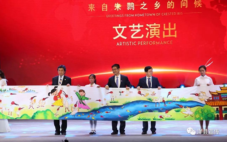 5月22日晚,“來自朱鹮之鄉的問候”文藝演出在洋縣劇團精彩上演,來自中日韓三國參加首屆朱鹮國際論壇的嘉賓觀看了演出。