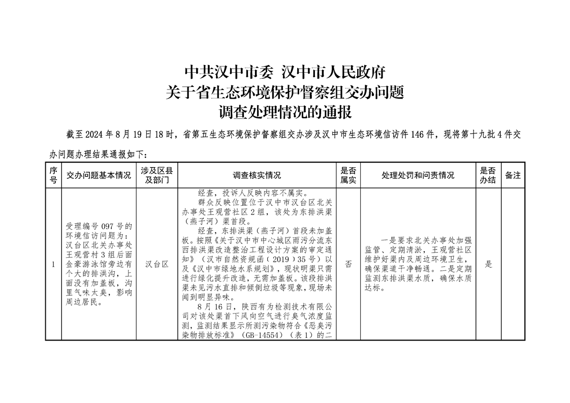 中共漢中市委 漢中市人民政府關于省生態環境保護督察組交辦問題調查處理情況的通報(第十九批4件)
