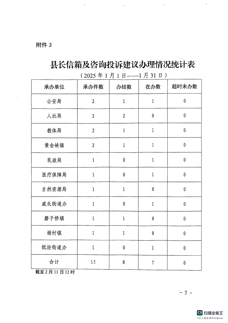 關于2025年1月份12345政務服務熱線及市(縣)長信箱等群眾訴求辦理情況的通報