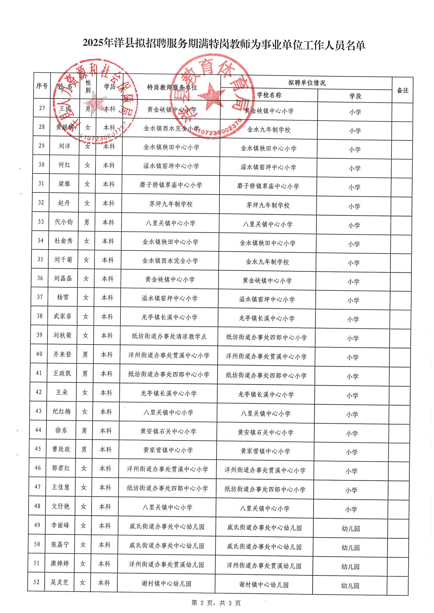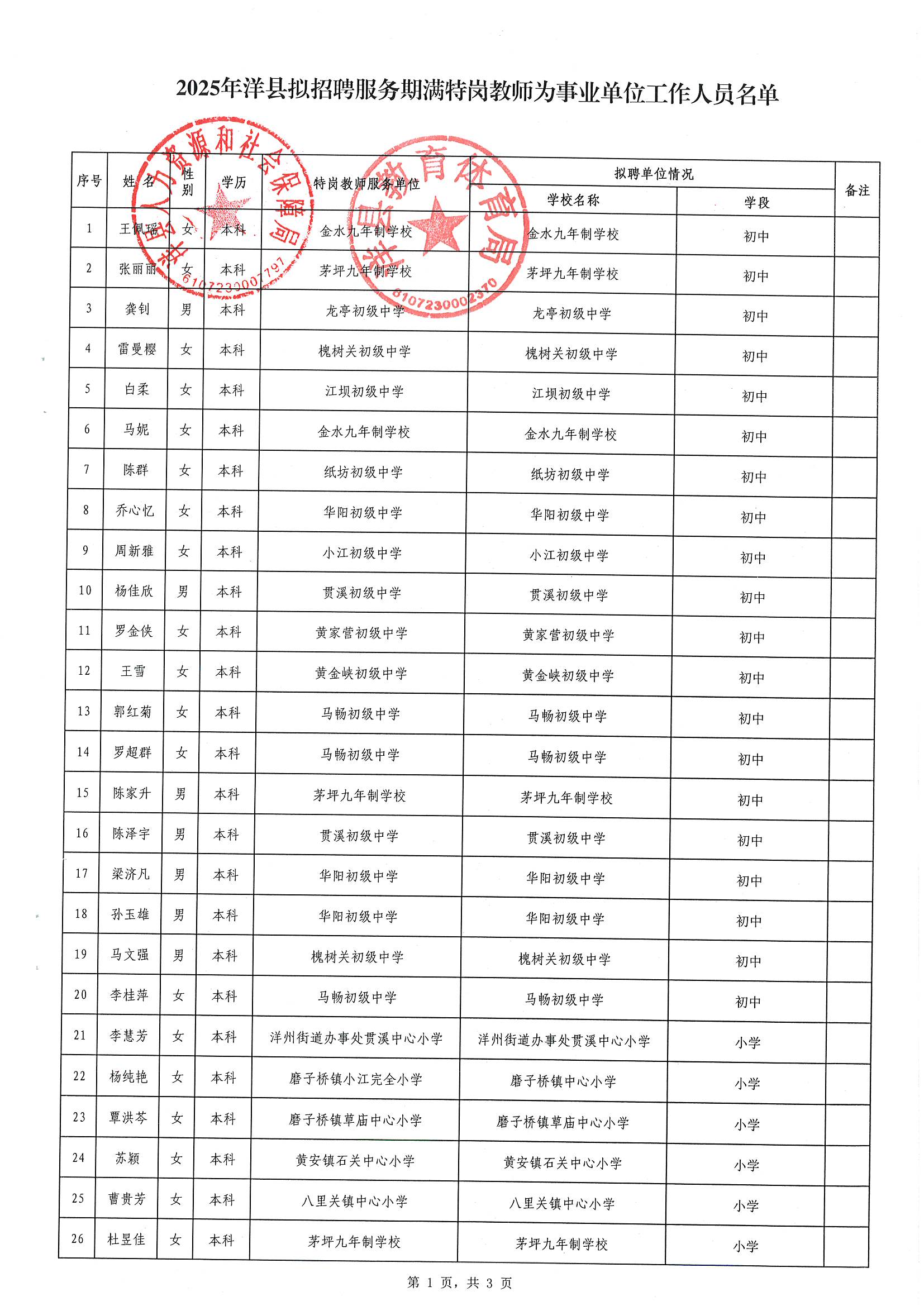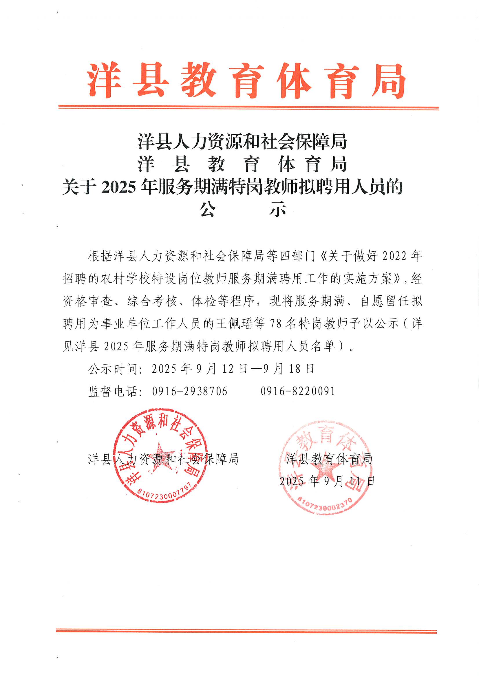 關(guān)于2025年服務(wù)期滿特崗教師擬聘用人員的公示