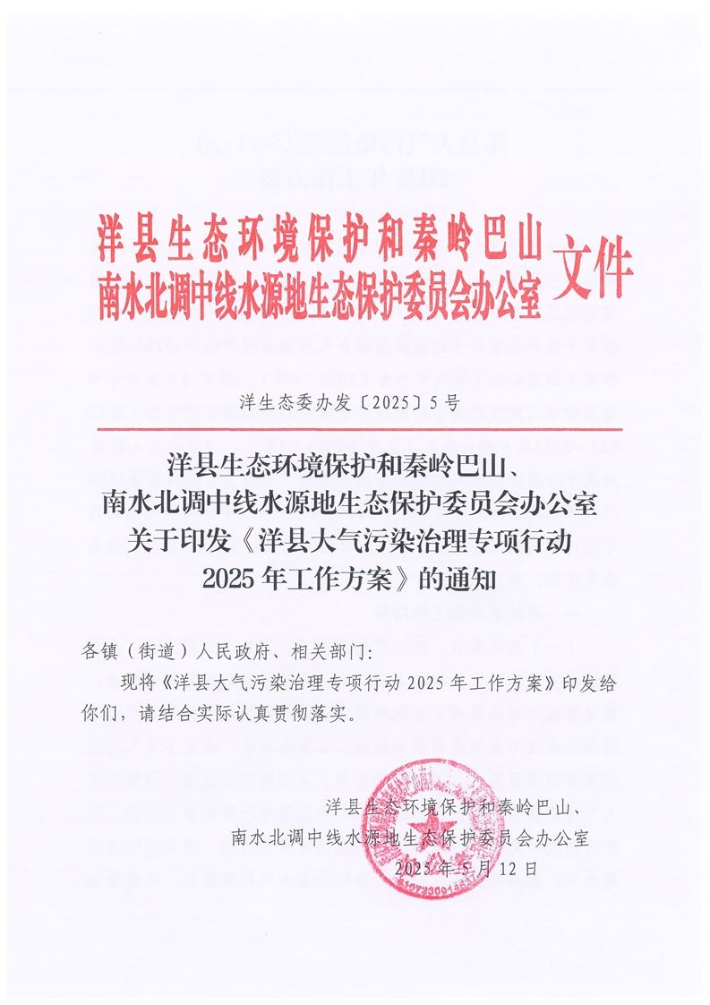 關于印發《洋縣大氣污染治理專項行動2025年工作方案》的通知