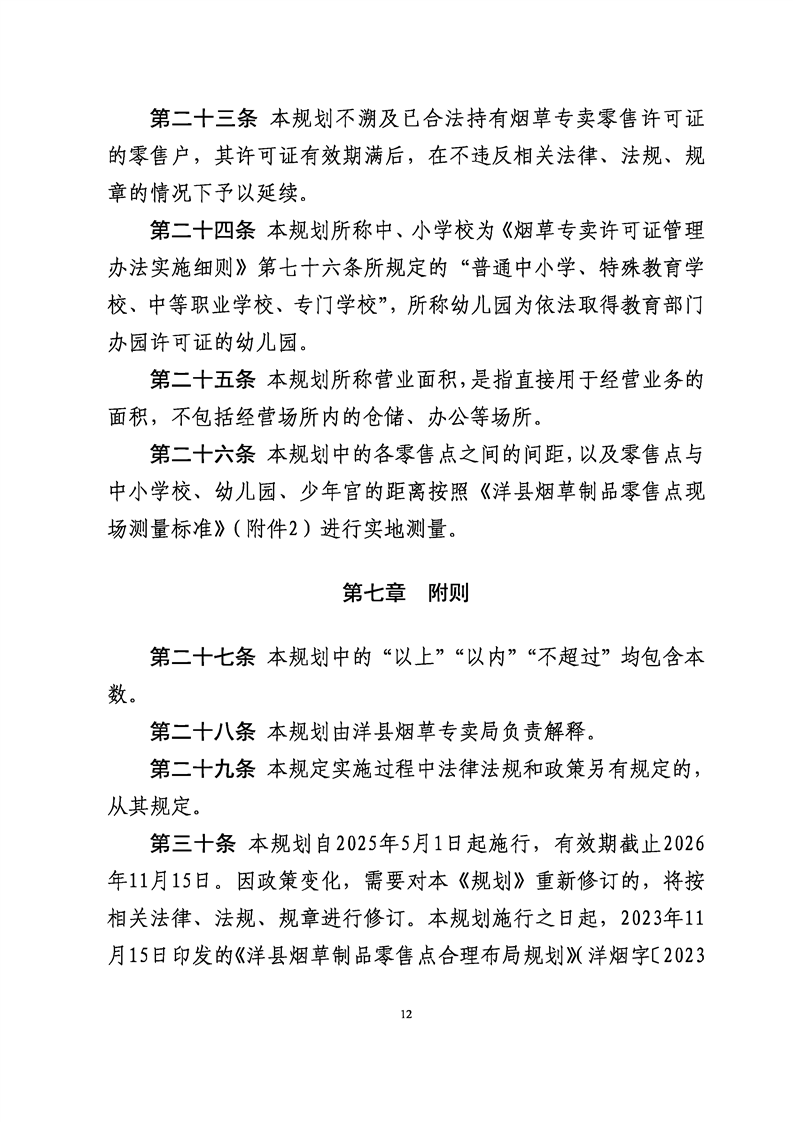 【有效】洋規〔2025〕001—煙草局001 關于修訂洋縣煙草制品零售點合理布局規劃部分條款的通知